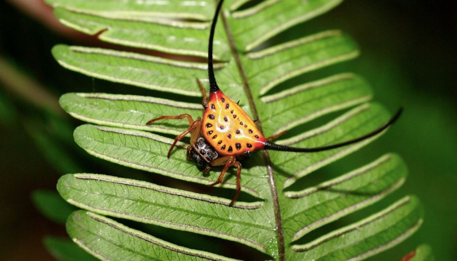 Удивительные рогатые пауки Gasteracantha arcuata вблизи